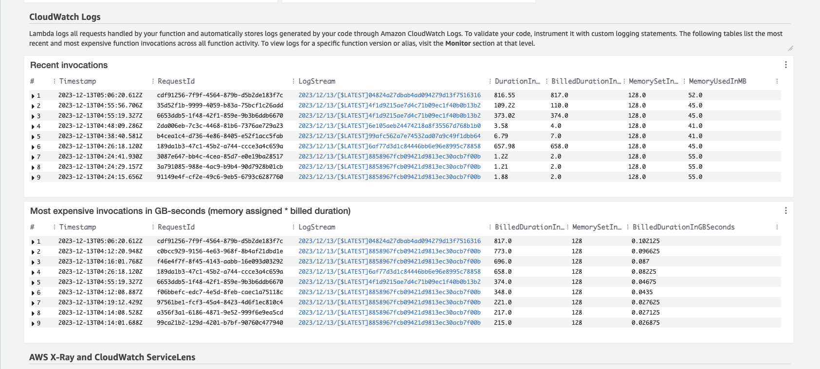 작업을 진행하며 디버깅을 하기 위해 로그를 확일 할 필요가 있습니다. 람다의 경우 기본적으로 Monitoring이 활성화되어있기 때문에, CloudWatch를 통해서 확인할 수 있습니다.