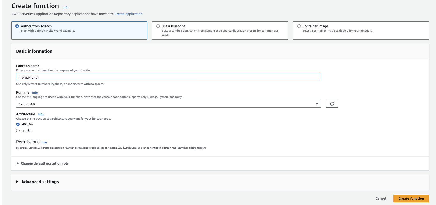 사실 Lambda 함수를 생성하는 방법은 크게 어렵지 않습니다. Create Function 선택 후 원하는 언어를 선택하면 코드를 입력할 수 있는 화면이 나옵니다. 해당 화면에서 언어를 선택한 후 개발 코드를 작성하면 됩니다.