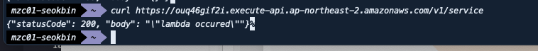 이후 생성된 주소로 Request를 전송하면 다음과 같이 정상적으로 람다가 실행되고 응답된 것을 확인할 수 있습니다.